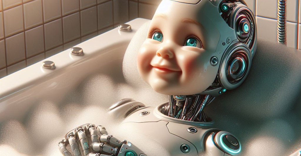 Pur non avendo bisogno di essere lavato, ROBBIE™ allena i genitori a svolgere con regolarità il compito del bagnetto. La “carrozzeria” del robot, infatti, presenta una serie di microfessure da cui fuoriesce a intervalli regolari una minuscola quantità di olio lubrificante che rende il bambino leggermente untuoso e maleodorante e che costringe i genitori a lavarlo con i metodi tradizionali (acqua a 37°C per non surriscaldare i componenti esterni, e comune sapone).