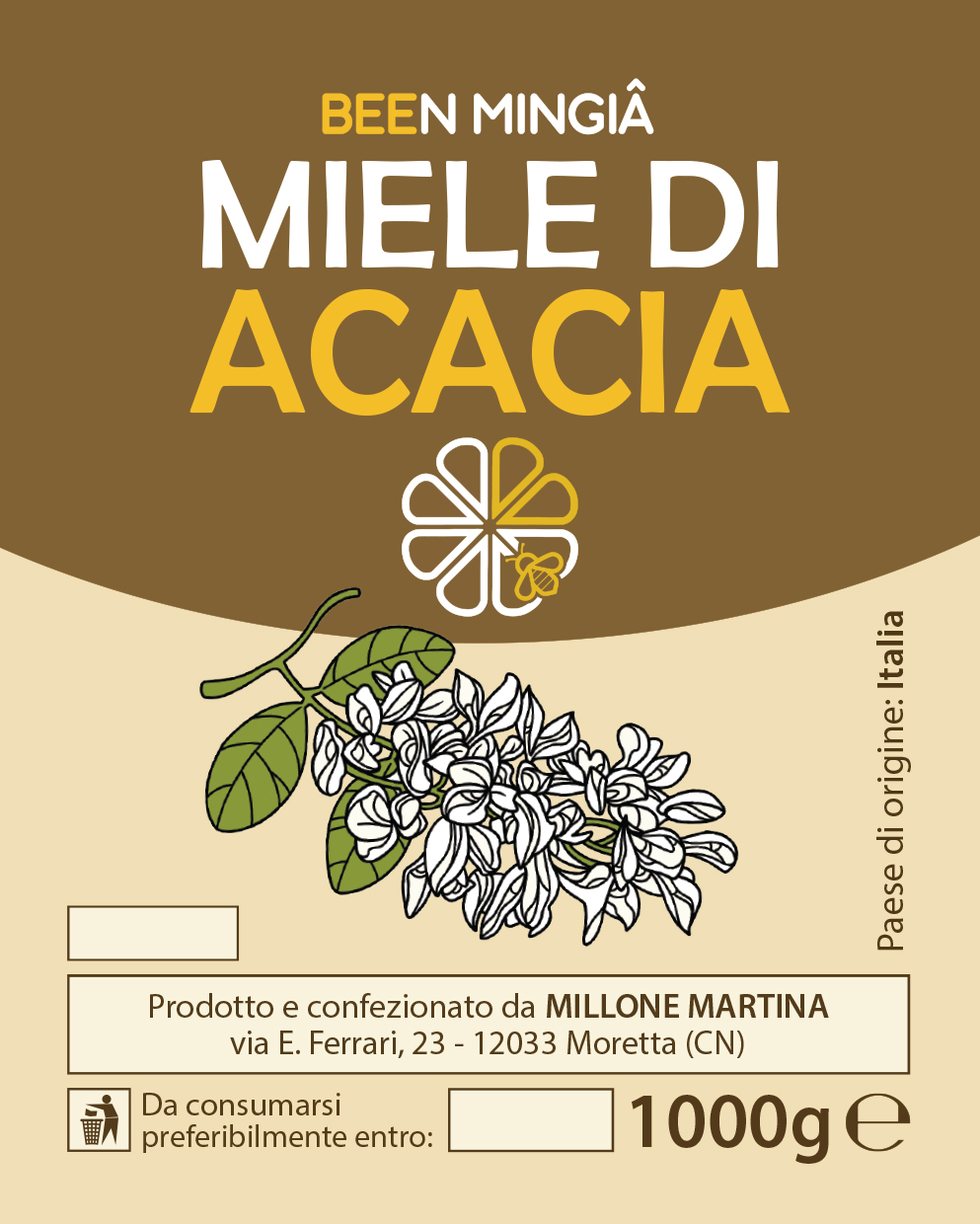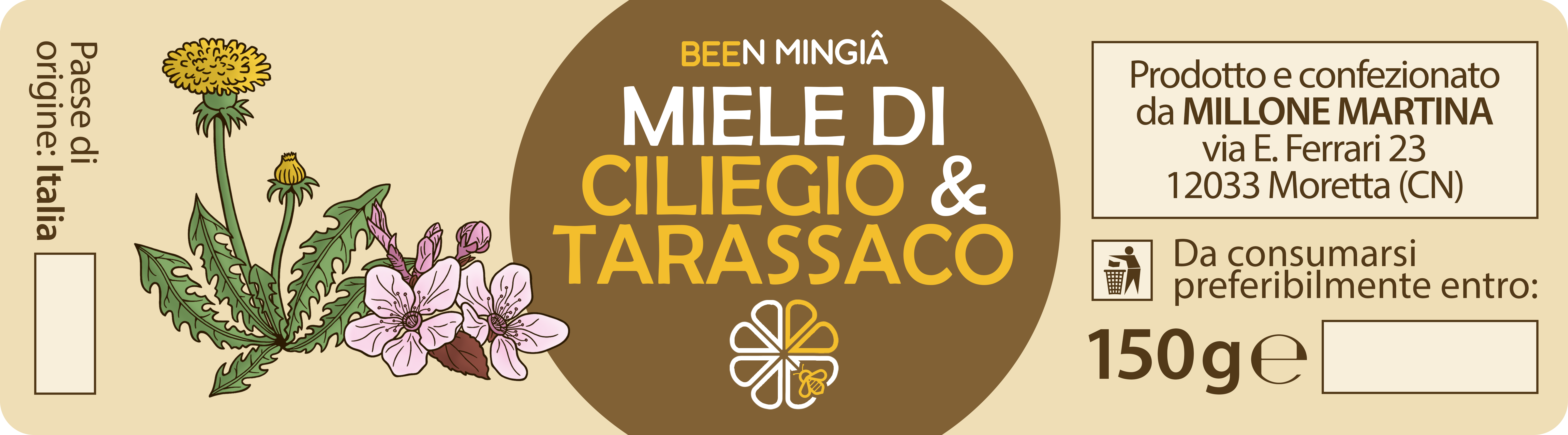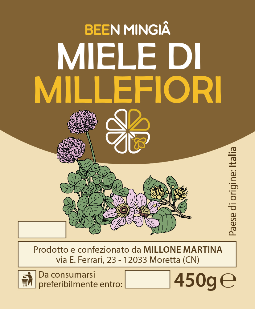 Logo aziendale e immagine coordinata per l’etichettatura dei barattoli di miele (variazioni su tema in base alla varietà).